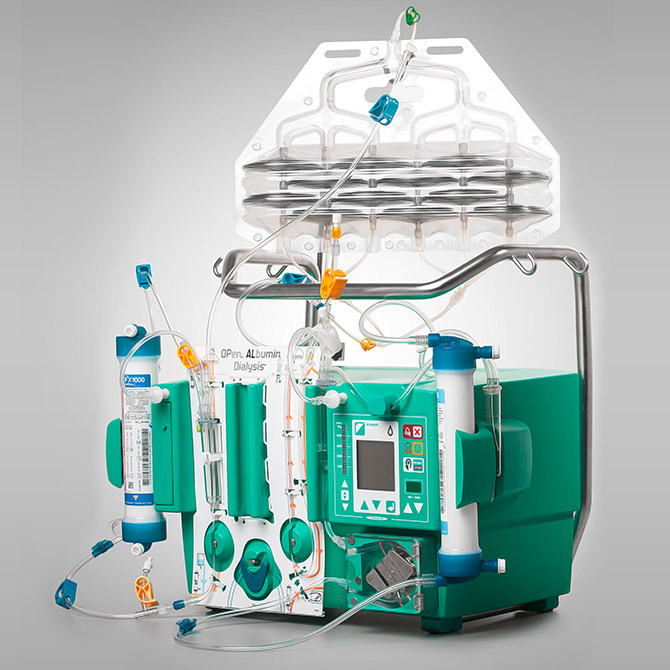 Liver support designed for Fresenius Multifiltrate. Utilize an infusion pump as an add-on to the dialysis system to perform Albumin Dialysis with a customized tubing kit.